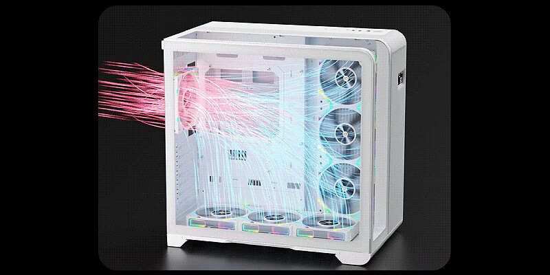תמיכה בעד 7 מאווררים, כרטיס גרפי באורך של עד 400 מ"מ, וקירור למעבד בגובה של עד 157 מ"מ,עם אפשרות להתקין רדיאטור קירור נוזלי בגודל 360 מ"מ על הפאנל הימני לקירור אופטימלי.