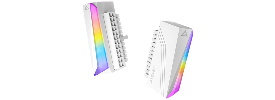 מתאם 24 פינים בזוויות 90° עם תאורת ARGB בצבע שחור