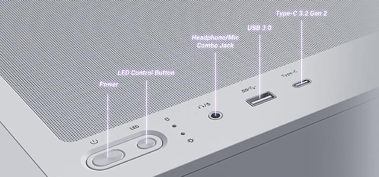 USB 3.0 | Earphone/Mic | USB Type-C | RGB Controller