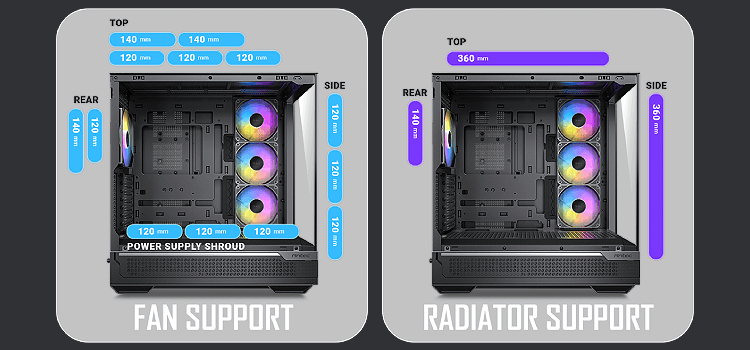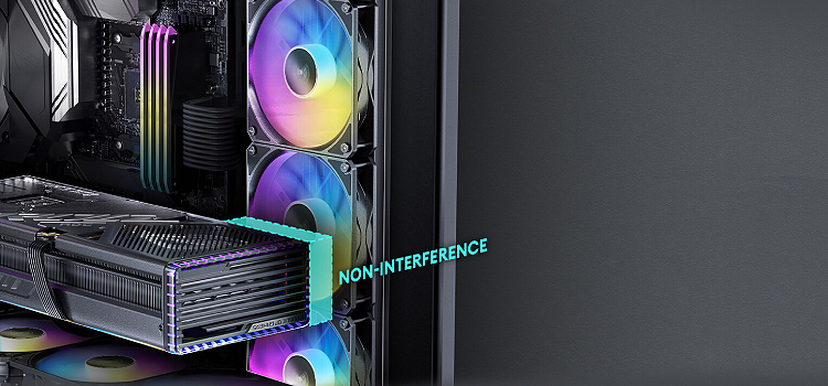 אין הפרעות בין רדיאטור צד בעובי סטנדרטי (52 מ"מ) לבין RTX 4090.