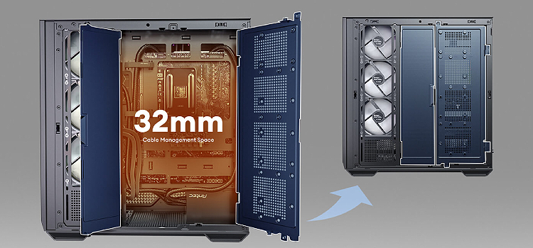 עם מרחב ניהול כבלים של 32 מ"מ וכיסוי דלת נשלף, המאפשר ניהול כבלים ללא הפרעה.
