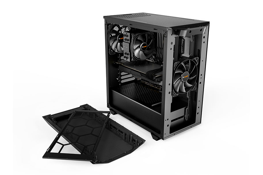 The front, sides and regular top cover are equipped with insulation mats that result in great stability and improved noise dampening capabilities. The dust filters on the front and bottom are easy to remove for cleaning.