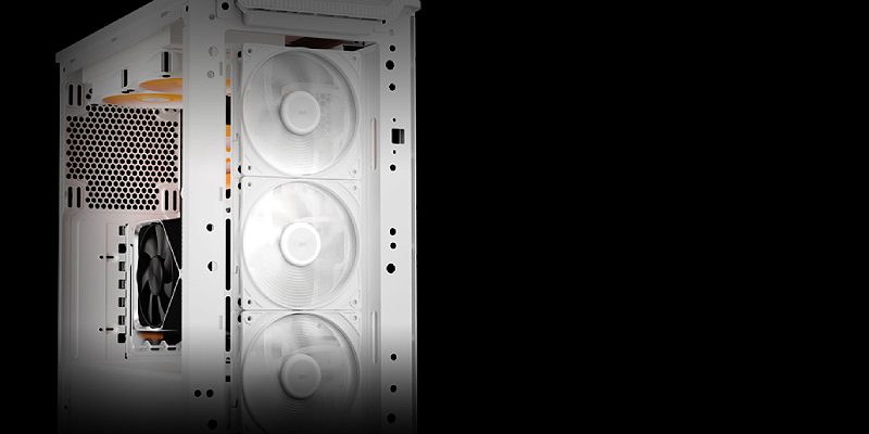כולל שני מאווררי Pure Wings 3 בגודל 140 מ"מ (PWM, בצבע לבן) שמספקים לחץ אוויר יוצא דופן.
