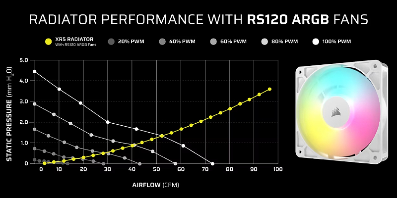 שלושה מאווררי RS ARGB מותקנים מראש, מספקים עוצמה של קירור ותאורה - ללא חיבורים מורכבים.