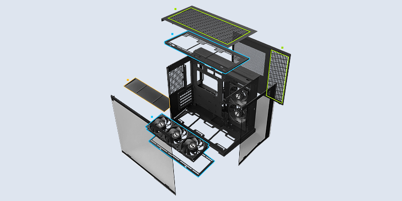 ⏹︎ הפאנלים העליון והצידי הימני כוללים מסנני רשת משולבים – ללא צורך בהתקנה או פירוק.