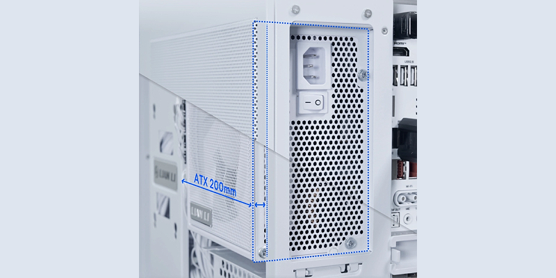 עיצוב רשת צדדית מורחבת מאפשר התקנת ספקי כוח ATX באורך של עד 200 מ"מ – ללא הגדלת רוחב המארז.