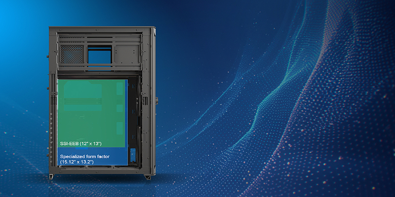 שיא העיצוב המודולרי והגמיש למערכות עבודה, עם תמיכה בלוחות אם בפורמט SSI-EEB (12"x13") ובפורמטים מיוחדים בגודל עד 15.12"13.2x".