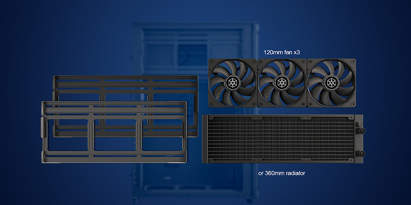 התושבת המצורפת תומכת בשלושה מאווררי 120 מ"מ ו/או רדיאטור בגודל 360 מ"מ,