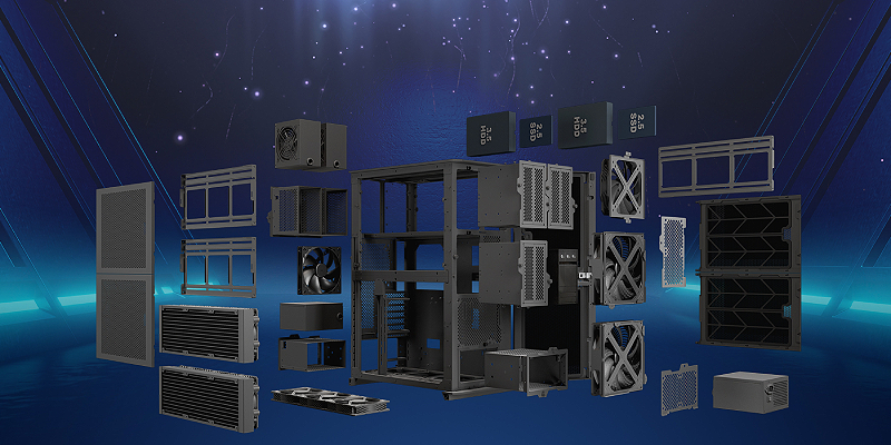 המארז תומך בשתי ספקי כוח ומאפשר התקנה של עד שלושה רדיאטורים בגודל 360 מ"מ לקירור מתקדם.