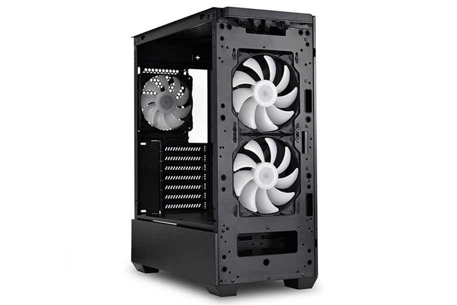 Mesh intakes spanning the front panel guarantee sufficient airflow in and out of the system with filtration for the dust.