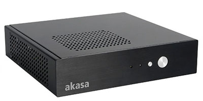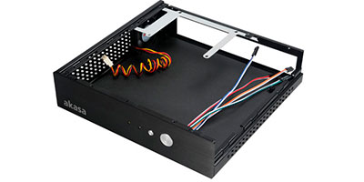 | The Akasa Cypher Ultra-Compact Thin Mini-ITX Case - VESA Mountable is a great solution to Home Theatre PC builds. In addition the Akasa Cypher is VESA mountable, so you can bolt it to the back of your monitor and keep your desk clean and organized. | ![]() |