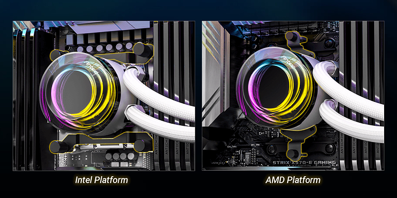 מגיע עם מאווררי רדיאטור עוצמתיים של 120 מ"מ ARGB PWM, המספקים פונקציונליות מעשית וביצועי קירור חזקים.