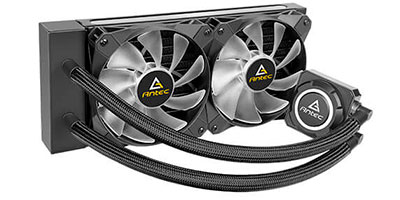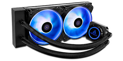 | Effective Damage Prevention The integration of the water pump and radiator prevents the CPU from being damaged by vibration, and it also improves the efficiency of thermal control. |  |