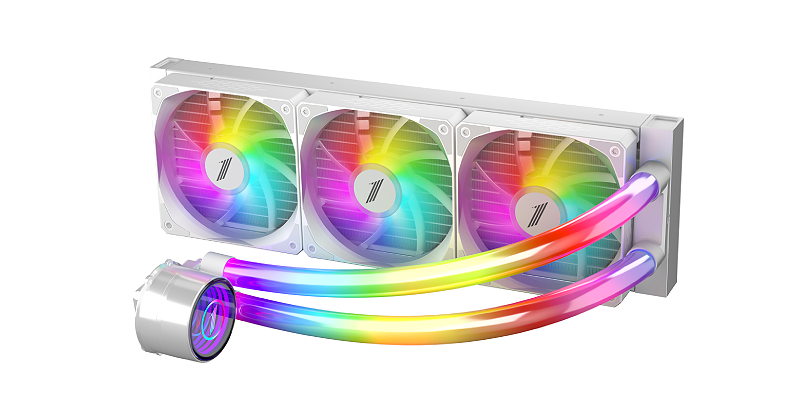 קירור נוזלי למעבד 1StPlayer MT360 Infinite Space White, בצבע לבן, עם תאורת aRGB מסתנכרנת עם לוח האם וצינורות מוארים. MTIS-360-WH