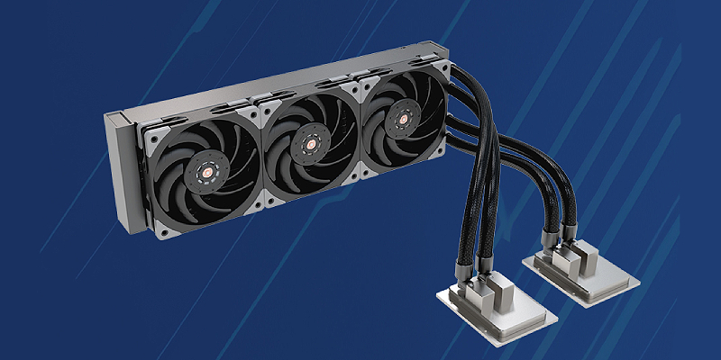 קירור נוזלי מתקדם All-In-One עם שלושה מאווררי 120 מ״מ, זוג משאבות ושני בלוקים לקירור CPU.
