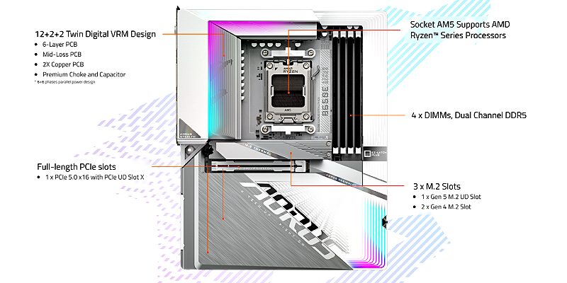 AMD Socket AM5:Supports AMD Ryzen™ 9000/8000/ 7000 Series Processors