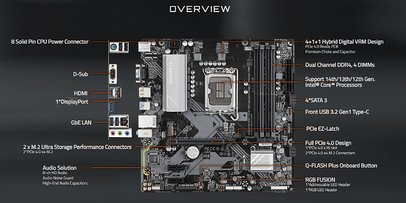 Supports Intel® Core™ 14th/ 13th /12th processors •