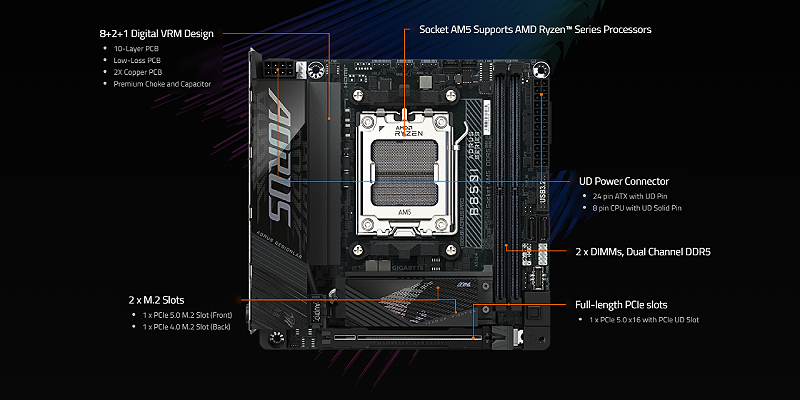 AMD Socket AM5 : Supports AMD Ryzen™ 9000 / 8000 / 7000 Series Processors