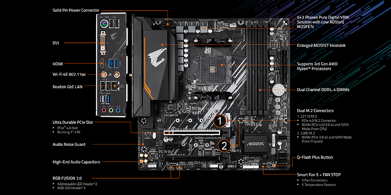 Dual Ultra-Fast NVMe PCIe 4.0/3.0 M.2 Connectors