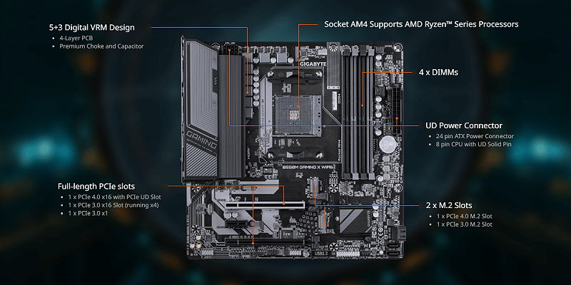 PCIe UD Slot : PCIe 4.0 x16 slots with 10X strength for graphics card & Better Heat dissipation effect