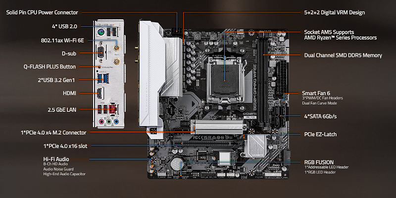 AMD Socket AM5:Supports AMD Ryzen™ 7000 / Ryzen™ 8000 / Ryzen™ 9000 Series Processors