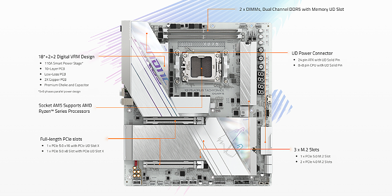 PCIe UD Slot X : PCIe 5.0 x16 slot with 10X strength for graphics card