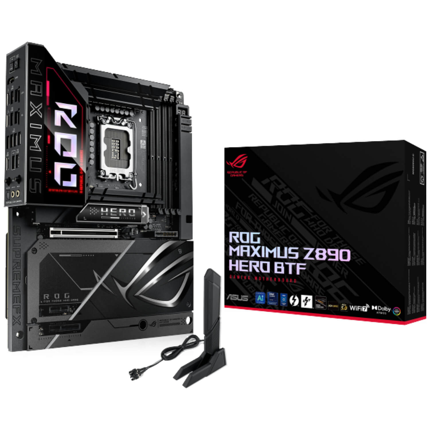 לוח האם ROG Maximus Z890 Hero BTF כולל מחברים נסתרים עבור חיבורי החשמל של לוח האם, כרטיס המסך, יציאות ה־USB ומאווררים – מה שמאפשר בנייה נקייה ואסתטית במיוחד למערכת המבוססת על מעבדי Intel® Core™ Ultra (סדרה 2).