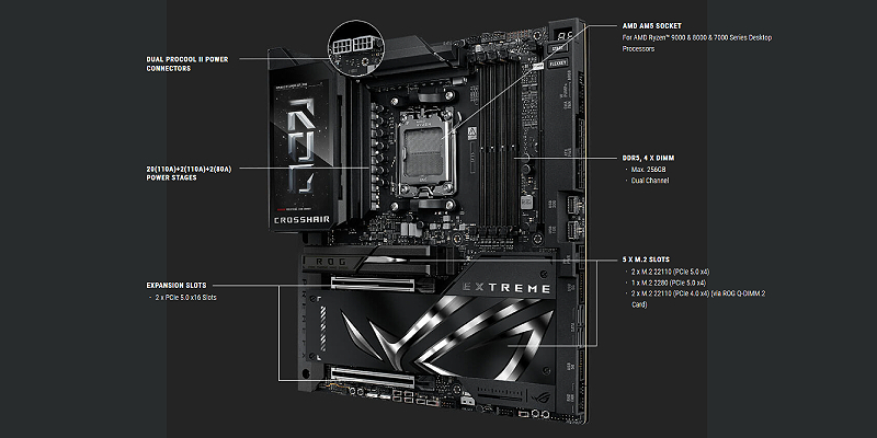 ה-ROG Crosshair X870E Extreme הוא לוח האם המוביל בסדרת AMD Ryzen™ 9000.