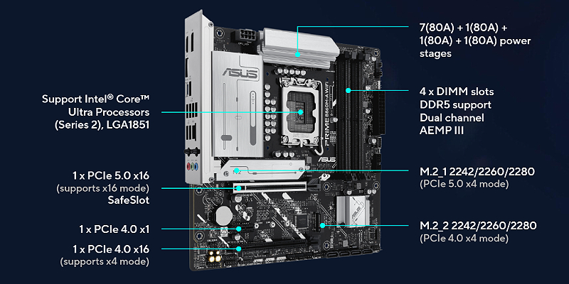 לוחות האם מסדרת ASUS PRIME מתוכננים במומחיות כדי לממש את מלוא הפוטנציאל של מעבדי Intel® Core™ Ultra העדכניים ביותר (סדרה 2).