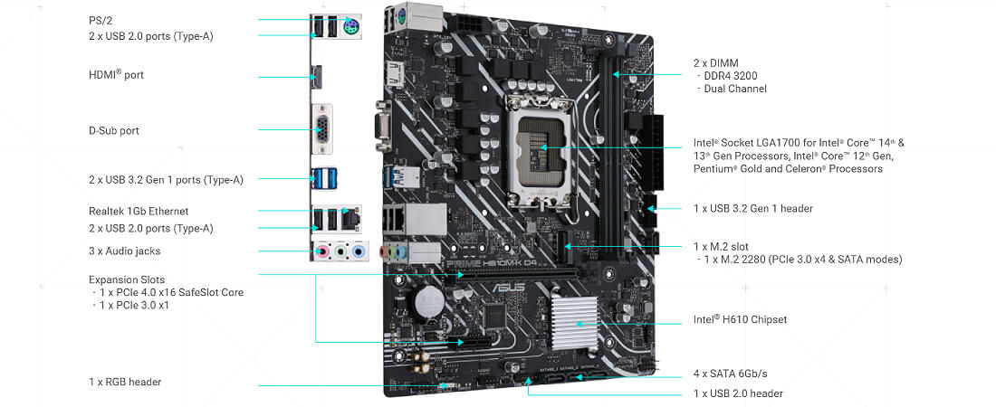 מתגאה בעיצוב כוח חזק, פתרונות קירור מקיפים ואפשרויות כוונון חכמות, Prime H610 מספק למשתמשים ולבוני המחשבים מגוון אפשרויות לכוונון ביצועים באמצעות תוכנה אינטואיטיבית ותכונות קושחה.