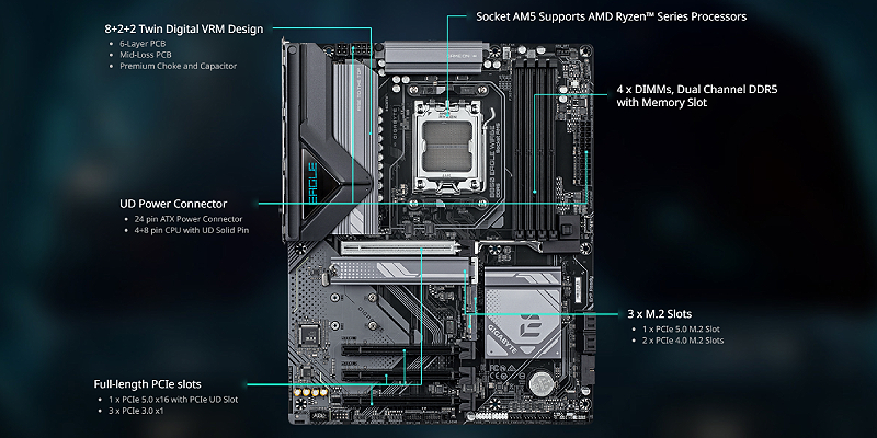 AMD Socket AM5 : Supports AMD Ryzen™ 9000 / 8000 / 7000 Series Processors