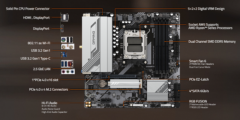 AMD Socket AM5:Supports AMD Ryzen™ 7000 Series/ Ryzen™ 8000/ Ryzen™ 9000 Series Processors
