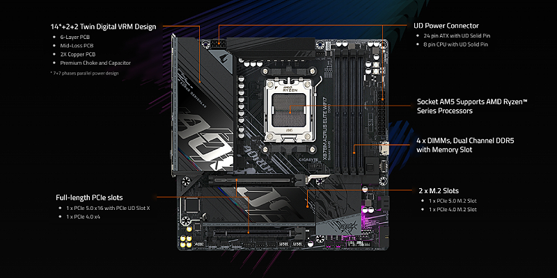 AMD Socket AM5:Supports AMD Ryzen™ 9000 / 8000 / 7000 Series Processors