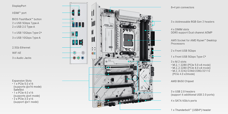 לוחות האם מסדרת ASUS B650E תוכננו בקפידה כדי למצות את מלוא הפוטנציאל של מעבדי AMD Ryzen מסדרות 9000, 8000 ו-7000.