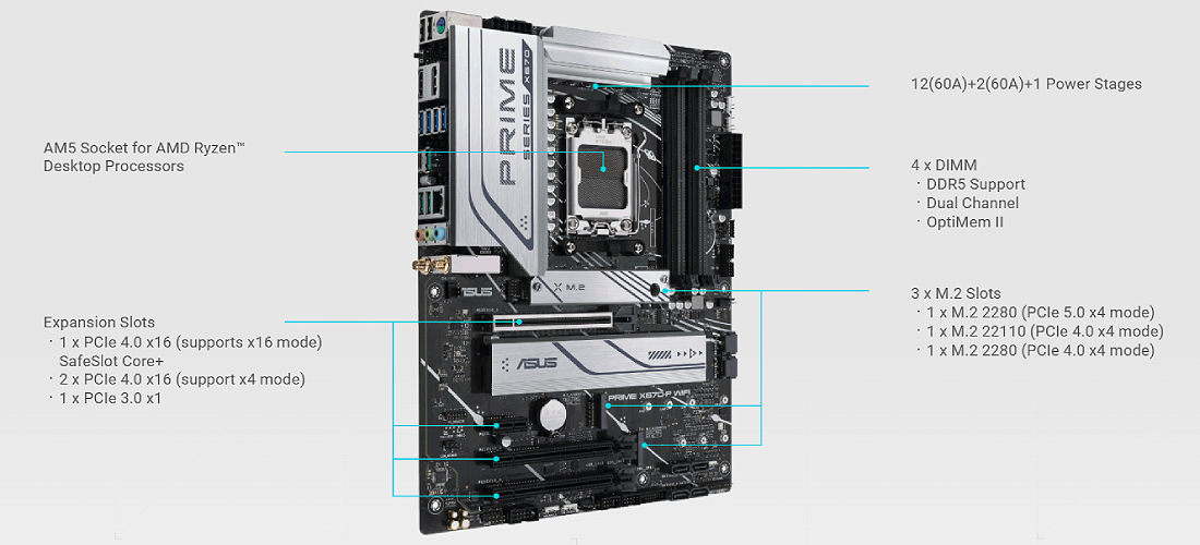 לוחות האם מסדרת ASUS Prime מתוכננים במומחיות כדי למצות את מלוא הפוטנציאל של מעבדי AMD Ryzen 7000.