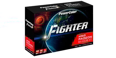 | Dual Cooling Fan PowerColor Radeon™ RX 6500 XT Fighter graphics card features a 2 x 80mm optimized fan design to maintain your card in the best cooling solution. |