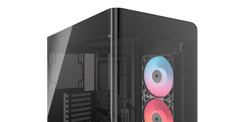 המארז הראשון של CORSAIR עם פאנל זכוכית "עוטף", הפאנל הקדמי והצדדי עשויים מחתיכת זכוכית אחת, ומספקים מבט פנורמי ונקי על רכיבי המחשב שלך.