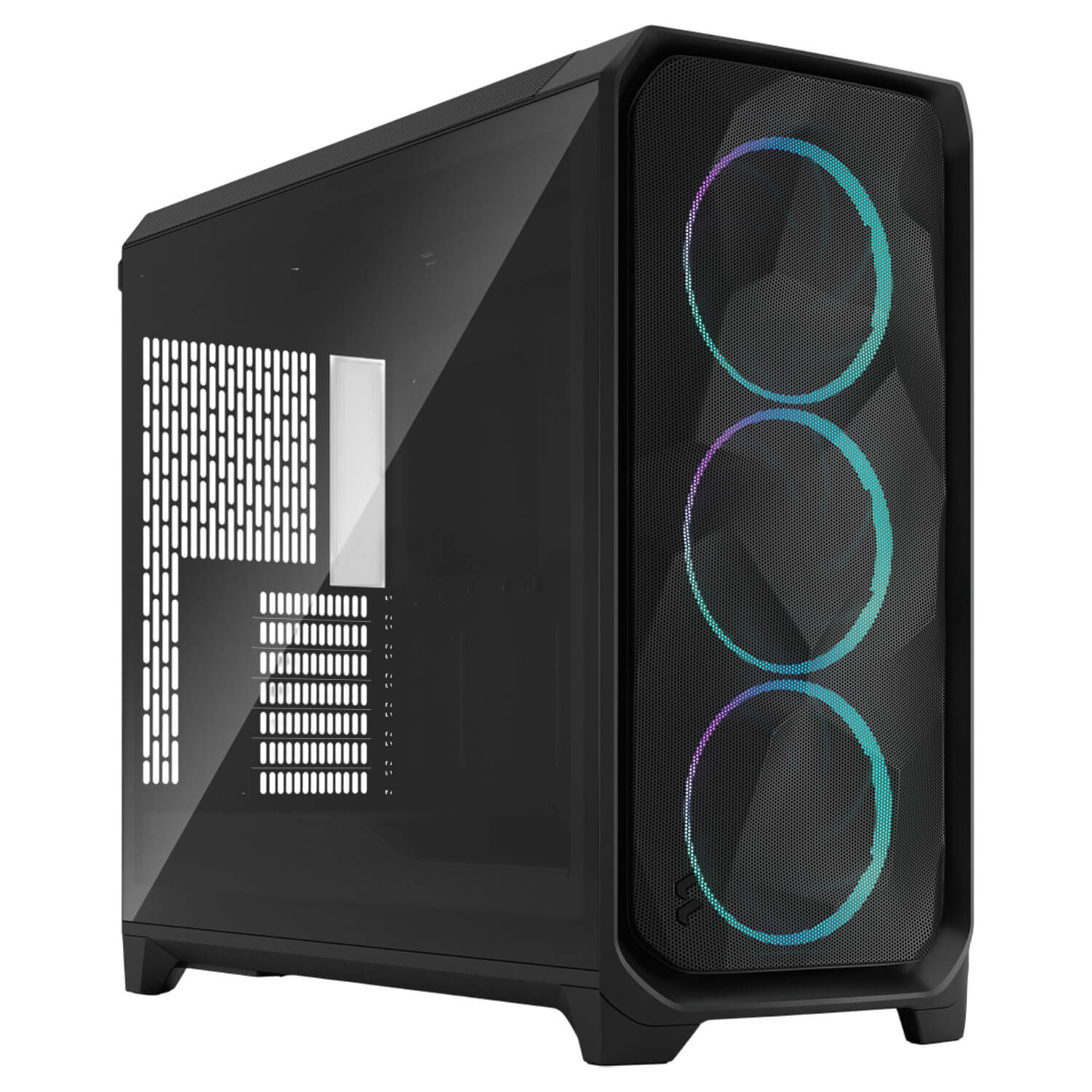 מארז מחשב Meshify 3 XL Black RGB TG Light Tint מבית Fractal Design, בצבע שחור, עם קירור מתקדם ועיצוב אווירודינמי ייחודי במבנה תצורה רחב ומרווח, מגיע עם 3 מאווררי Momentum RGB בגודל 140 מ"מ מותקנים מראש. FD-C-MES3X-04