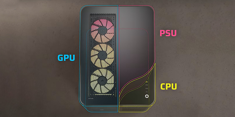 עיצוב ייחודי בעל שלושה תאים, נועד לבודד רכיבים חמים ולהבטיח קירור יעיל וביצועים מקסימליים בכל עת.