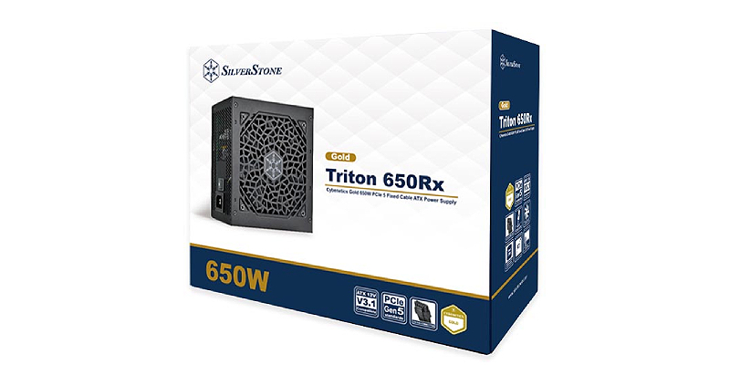 ספק כוח ATX בהספק 650W עם תקן Cybenetics Gold וחיבורי PCIe 5, כולל כבלים קבועים.
