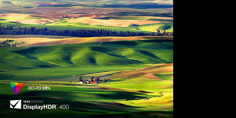 VESA DisplayHDR™ 400 מאפשר לך ליהנות מצבעים ברורים ומציאותיים של עד 98% DCI-P3,
