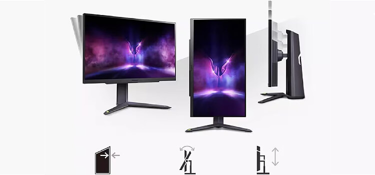 ניתן לכוונן את הבסיס כדי לשנות את הגובה, ההטיה והציר של הצג כדי לעזור לך לשחק משחק בצורה נוחה יותר.