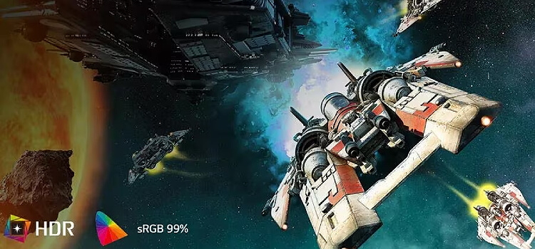 עולם של צבע עם HDR10 שעוזר לשפר את איכות התמונה וטווח צבעים sRGB 99% (Typ.) 95% (מינימום) כדי לגרום למשחקים לבלוט.