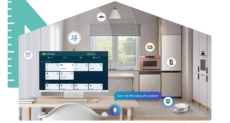 הצג החכם מאפשר לך לחיות בנוחות עם אפליקציית SmartThings, עבור מכשירי הבית החכם שלך.