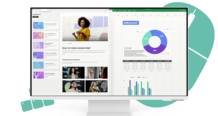 Multi View מאפשר לך להשתמש ב-Microsoft 365 ובדפדפן האינטרנט על אותו מסך.