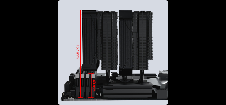 adapts to memory below 40mm (memory above 40mm requires pre-installed fans), and adapts to chassis with a radiator height limit of 157mm and above