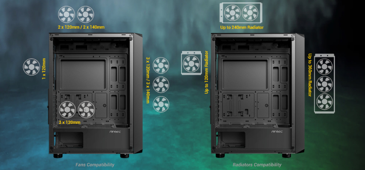 ניתן להתקין בו 8 מאווררים בגודל 120 מ"מ בו זמנית.