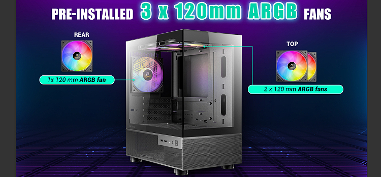 עם עיצוב תצוגה מלאה ה-CX200M RGB הוא המארז האידיאלי עבור מערך ה-M-ATX.