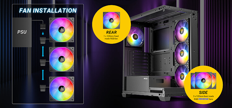 זרימת אוויר אנכית מלמטה למעלה באמצעות רשת בחלק התחתון והצד מאיצה את פיזור החום.