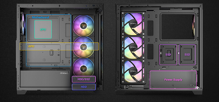 הפאנל השמאלי והקדמי של CX300M RGB Elite מציעים תצוגה ללא הפרעה של הבנייה שלך,